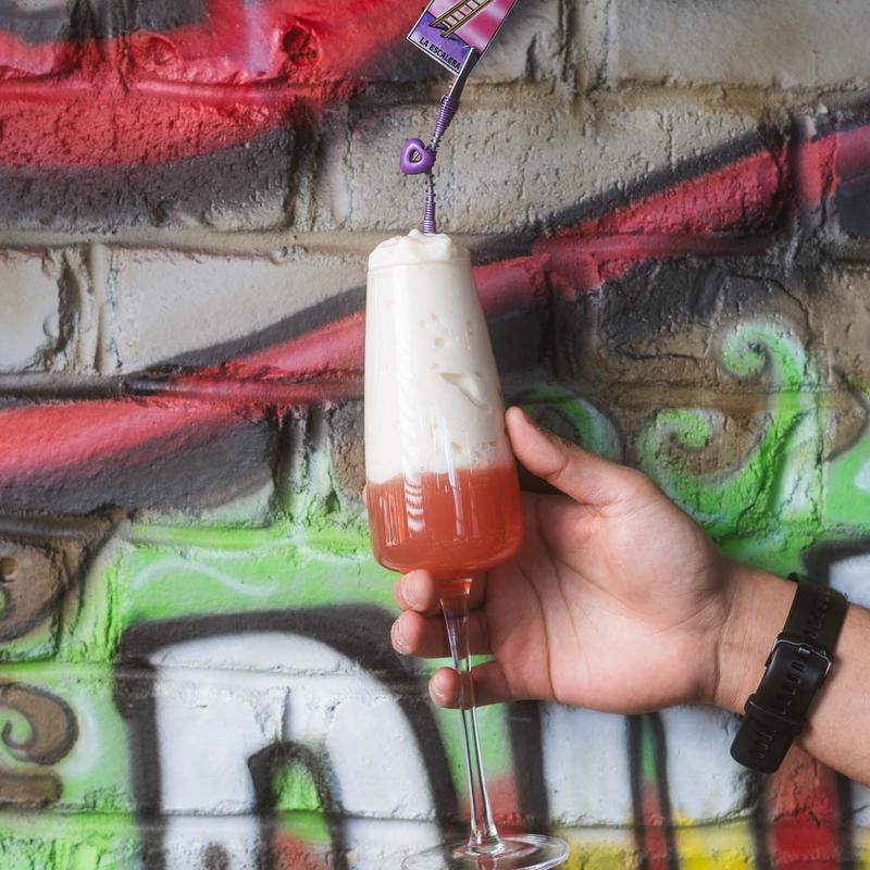 Hibiscus infused New Amsterdam Gin, Campari, and citrus shrub. Rimmed with Takis dust • Tastes Like: If fruit, corn, and flowers were rival gangs in a prison riot.